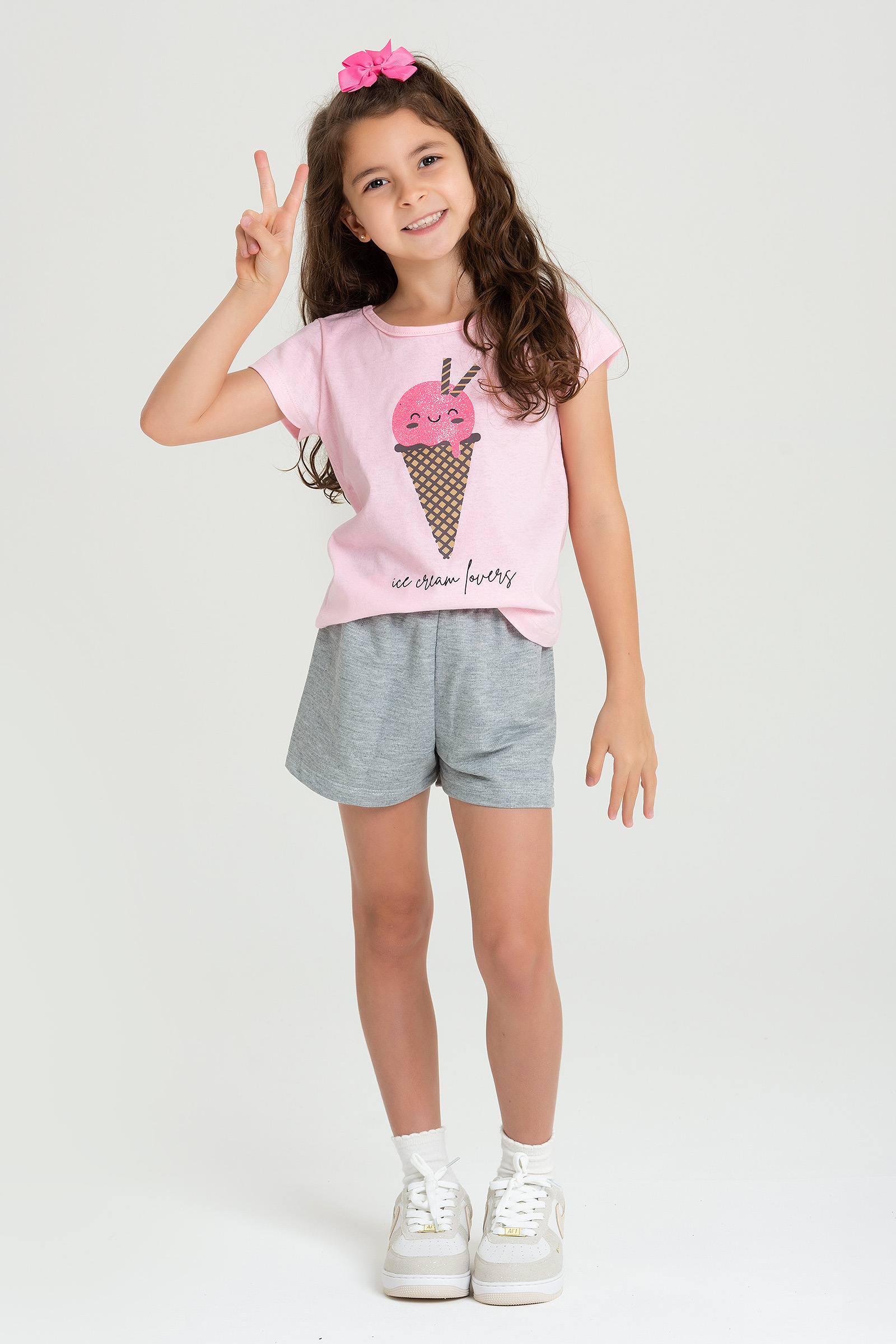 Baby Look confeccionada em meia malha com estampa frontal com glitter, possui manga curta. Short confeccionado em moletinho, possui cós com elástico, sua menina vai amar!